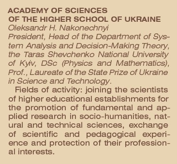 Академія наук вищої школи України є громадською організацією, яка об’єднує вчених вищих навчальних закладів для сприяння в проведенні фундаментальних і прикладних досліджень у галузі природничих, технічних та соціогуманітарних наук, обміну науковим і педагогічним досвідом та захисту їхніх фахових інтересів. Заснування АН ВШ України відбулося на тлі процесів демократизації української науки на початку 1990-х рр. До першої ініціативної групи зі створення АН ВШ України увійшли відомі українські вчені, професори Київського національного університету імені Тараса Шевченка В. І. Стріха і Ю. І. Чутов та М. І. Дробноход. На скликані ініціативною групою установчі збори в 1992 р. прибуло 50 провідних докторів наук, професорів українських ВНЗ, які й були академіками-засновниками АН ВШ України. Першим президентом АН ВШ України став В. І. Стріха. У 1999 р. другим президентом Академії обрали професора М. І. Дробнохода, із 2014 р. — О. Г. Наконечного. Перші роки роботи Академії стали часом інтенсивної організаційної розбудови й підвищення її авторитету. Регіональні відділення