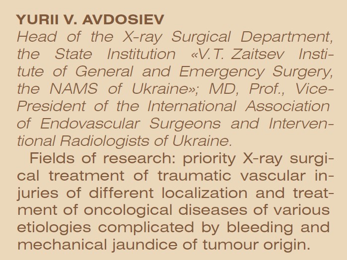 Професор Юрій Авдосьєв уперше в Україні провів низку ендоваскулярних операцій: ендоваскулярне лікування венозної еректильної дисфункції у чоловіків із пенального доступу (березень 2016 р., м. Харків); емболізація гілок нижньої брижової вени із черезшкірного черезпечінкового доступу у хворого з гострою шлунково-кишковою кровотечею із гемороїдальних вен колостоми (квітень 2016 р., м. Харків); у межах науково-практичної конференції з міжнародною участю «Застосування лазерної хірургічної системи LIMOX 120 в торакальній хірургії» — одномоментне лазерне видалення метастазів легенів у поєднанні з хіміоемболізацією печінкових артерій у хворої на IV стадію раку легенів із метастазами в печінку (27–28 листопада 2017 р., м. Кропивницький) та інші.