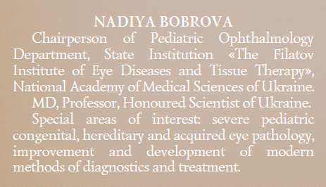 Завідувач відділу офтальмології дитячого віку ДУ «Інститут очних хвороб та тканинної терапії імені В.П. Філатова НАМН України»