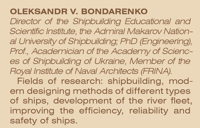 Професор О. В. Бондаренко має понад 200 наукових публікацій, зокрема три томи видання «Правила класифікації і побудови суден внутрішнього плавання» (Регістр судноплавства України), 8 навчальних посібників, 7 свідоцтв на авторське право та 1 патент.