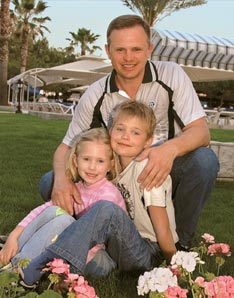 З дружиною Іриною виховують Сергія та Даринку. Діти беруть приклад з батька – займаються спортом. Донька – спортивними бальними танцями, син – плаванням.