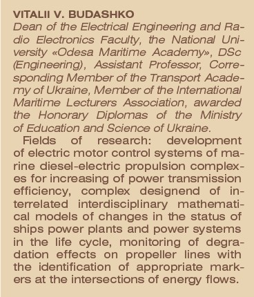 Однією з них є значні коливання частоти обертання рушія в межах експлуатаційних режимів. Невирішеність проблеми позначається на технічній безпеці судна й полягає в тому, що сучасні автоматизовані гідропропульсивні комплекси не дають змоги достатньо точно врахувати вплив різних факторів на стійкість і точність регулювання частоти обертання валу рушія. У докторській дисертації науковець розвивав теорію, методологію та технологію в галузі підвищення ефективності функціонування суднових енергетичних установок комбінованих пропульсивних комплексів. Для цього він розробляв систему моніторингу деградаційних ефектів на лініях гребних потоків рушіїв з ідентифікацією відповідних маркерів; стратегію всережимних регуляторів потужністю, моментом та частотою обертання електродвигунів підрулювальних пристроїв комбінованих пропульсивних комплексів; методологію побудови багатокритеріальних стратегій управління розподілом потужності суднових енергетичних установок цих же комплексів. Нині наукова діяльність В.В. Будашка сконцентрована навколо створення комплексу взаємопов’язаних міждисциплінарних математичних моделей зміни стану суднових енергетичних установок й електроенергетичних систем у життєвому циклі та моніторингу деградаційних ефектів на лініях гребних гвинтів з ідентифікацією відповідних маркерів на перетинах енергетичних потоків. Він активно співпрацює з провідними науковими школами Науково-дослідного проектно-конструкторського інституту морського флоту України, Одеського національного морського університету, Херсонської державної морської академії, Військової академії (м. Одеса) та багатьох інших навчальних закладів. Автор 3 патентів України, понад 80 наукових і методичних праць, серед яких монографії, навчальні посібники, освітні програми й програми практичної підготовки, методичні рекомендації, наукові та методичні статті. Багато з них індексується в базах Scopus і Web of Science. Як науковець та викладач найвищої категорії Віталій Віталійович докладає багато зусиль для впровадження серед освітян і вчених нових викладацьких ідей, досвіду, наукових розроблень. Член двох спеціалізованих учених рад із захисту кандидатських і докторських дисертацій, член Інституту морської техніки, науки і технологій, член Інституту інженерів електротехніки і електроніки, керівник групи забезпечення освітньої програми «Експлуатація суднового електрообладнання і засобів автоматики» НУ «ОМА», відповідальний виконавець науково-дослідної роботи «Енергоефективна система позиціонування судна подвійного призначення». Віталій Будашко талановитий не тільки в науці. Свій вільний час проводить активно та з користю. Улюбленими його заняттями є бджільництво, риболовля, гра на гітарі, написання віршів. Він співавтор «Поетичної енциклопедії Героїв Майдану» в межах проєкту «Дзвони серця. Небесна Сотня», презентація якої відбулася 21 листопада 2016 р. в Музеї Небесної Сотні в м. Івано-Франківськ.