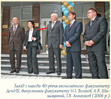 Економічний факультет відіграє велику роль у справі розвитку економіки Донецького регіону. Разом з Інститутами економіки промисловості та економіко-правових досліджень НАН України, АТ «Норд», ВАТ «ММК Азовсталь», ВАТ «МК ім. Ілліча», ВАТ «Донецький металургійний завод ім. В.І. Леніна», виробничим об’єднанням «Точмаш» НВО «Газапарат», товарно-сировинною компанією Донецька, ВАТ «Концерн «Стирол» та іншими організаціями він є частиною навчально-науково-виробничого комплексу.