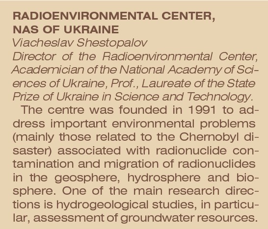 У Центрі вивчають міграцію радіонуклідів у зоні аерації, ґрунтових водах та глибоких водоносних горизонтах.