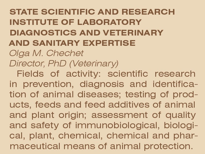 Інститут здійснює: тестування харчових продуктів, сировини тваринного, рослинного і біотехнологічного походження, кормів, комбікормів, комбікормової сировини та вітамінних препаратів, води (868 показників); діагностика захворювань заразної етіології та незаразної патології (267 захворювань 53 методами); визначення санітарно-гігієнічних показників (219 показників).