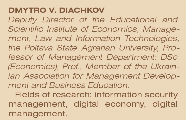 та доцента кафедри менеджменту і адміністрування ПНТУ ім. Кондратюка. З 2016 р. працював доцентом, а з 2020 р. — професором кафедри менеджменту ПДАУ. З 2021 р. обіймає посаду заступника директора Навчально-наукового інституту економіки, управління, права та інформаційних технологій Полтавського державного аграрного університету. У своїй діяльності Дячков Д. В. розвиває ідеї наукової школи професора І. А. Маркіної «Методологія та практика сучасного менеджменту». Центральною темою наукових інтересів є менеджмент інформаційної безпеки. Результати досліджень висвітлено у більш як 220 наукових працях. Серед основних наукових досягнень — авторська методологія оцінювання та діагностики інформаційної безпеки підприємств та актуалізація парадигми переходу від традиційної концепції управління до концепції цифрового менеджменту. Із 2021 р. Дмитро Володимирович став головним виконавцем державної наукової програми: «Концепція інвестиційного й фінансово-кредитного забезпечення техніко-технологічного оновлення і розвитку аграрного виробництва як складової продовольчої та економічної безпеки».