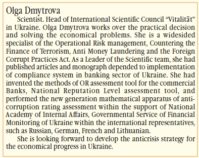 Дмитрова Ольга Сергіївна — учена-новатор, входить до складу дослідницької школи та міжнародної наукової ради вчених нового покоління «Vitalita..t».