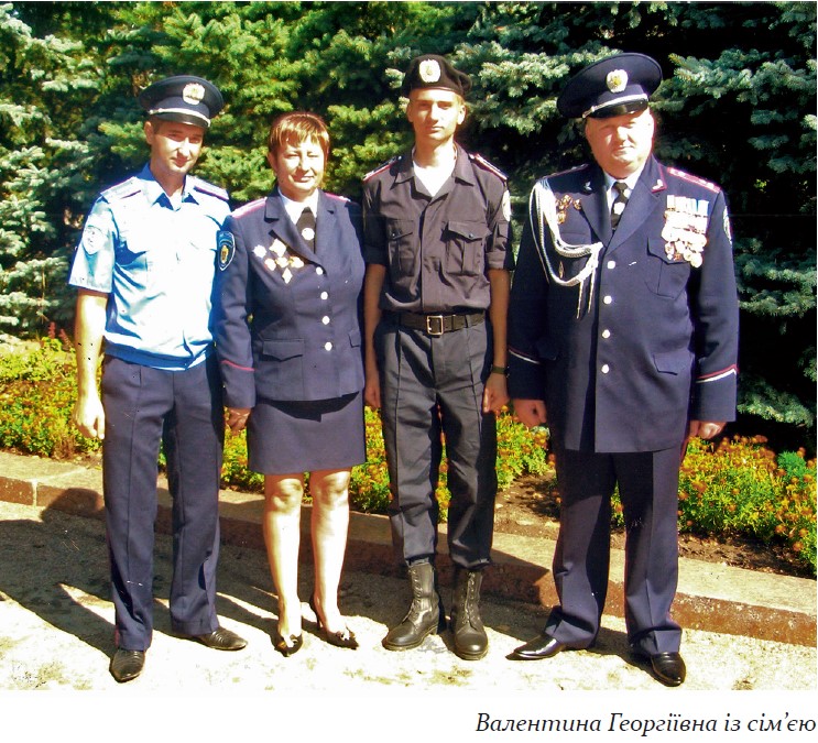 Уся сім’я Валентини Георгіївни присвятила життя службі на благо українського народу. Чоловік — пенсіонер МВС. Виростили з ним двох синів: Олексій — доктор юридичних наук, начальник відділу докторантури і ад’юнктури Національної академії внутрішніх справ; Віталій — кандидат юридичних наук, слідчий ДБР м. Київ.