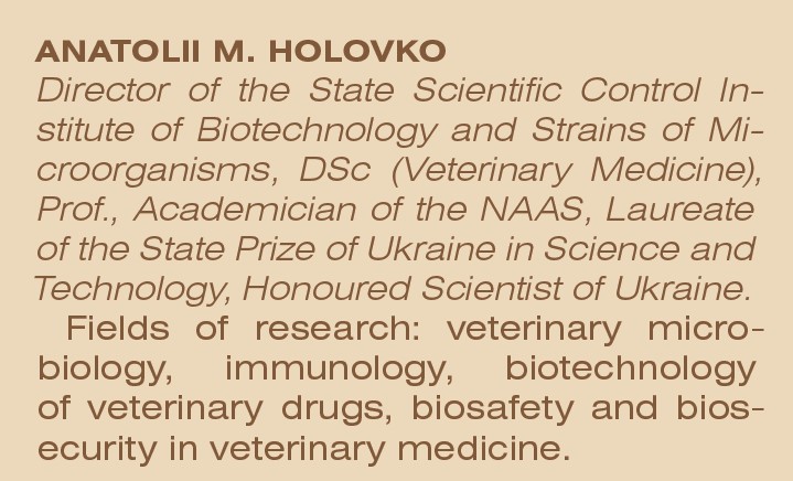 Академік НААН Головко Анатолій Миколайович — один із основних фундаторів галузі ветеринарної медицини в Україні. Напрями наукових досліджень вченого охоплюють ветеринарну мікробіологію та імунологію, біотехнологію ветеринарних препаратів, біологічну безпеку та біозахист у ветеринарній медицині. Під керівництвом науковця захищено 6 докторських та 17 кандидатських робіт. Він є автором та співавтором 5 вакцин, 5 лікувально-профілактичних препаратів, 8 лікувальних препаратів та 11 діагностичних тест-систем, з яких 5 — ПЛР тест-системи. Під його керівництвом розроблено нормативно-правові документи та стандарти з впровадження вимог належної виробничої практики (GMP), належної лабораторної практики (GLP) та належної практики дистрибуції (GDP) у вітчизняну систему виробництва та дистрибуції ветеринарних препаратів.