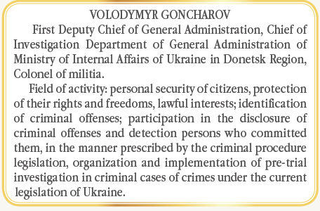 юридичній академії України ім. Я. Мудрого. Правозахисна діяльність В.В. Гончарова пов’язана з Донецькою областю, сфера спеціалізації – кримінально-правова. Так,