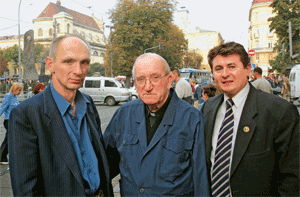 Зліва направо: кандидат технічних наук, професор, представник Українського університету в Західній Україні Василь Дмитрович Смичок, представник Українського університету в Італії доктор політичних наук, доктор філософських наук, професор, ректор Римського державного університету, ректор Папської академії наук, великий вчений, знавець 10 іноземних мов, особистий друг Патріарха Йосифа Сліпого, двох римських пап — Михайло Дмитрович Пришляк,