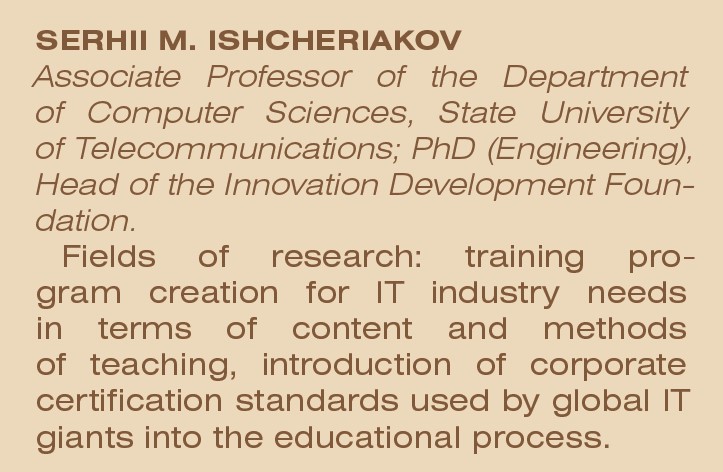 Сергій Михайлович Іщеряков — розробник навчальних програм для потреб ІТ-галузі щодо змісту та методики викладання. Він запровадив у навчальний процес корпоративні сертифікаційні стандарти, що застосовуються світовими ІТ-гігантами й вимагають глибоких системних знань в програмуванні. Учений підготував більше 100 українських студентів, які отримали сертифікати корпорації Oracle (США) як Java-програмісти.