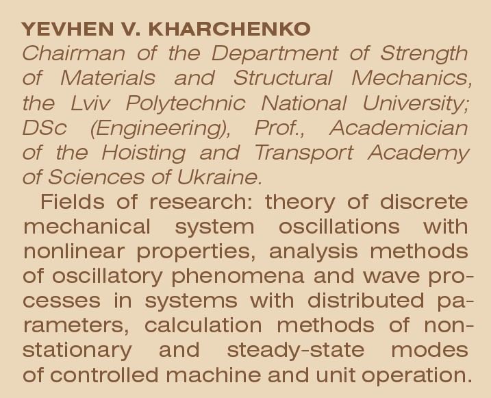 Професор Є. В. Харченко відомий у науковому світі як фахівець у галузі динаміки та міцності машин і інженерних споруд. Його авторству належать нові підходи, методи та теорії.