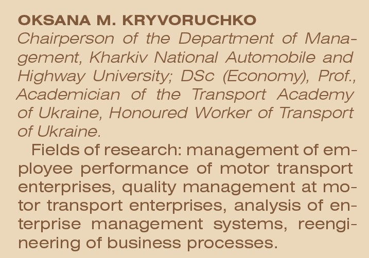 Становлення й розвиток професійної діяльності професорки Оксани Миколаївни Криворучко відбулися в стінах Харківського національного автомобільно-дорожнього університету, де вчена зосередила свою увагу на вивченні питань управління результатами діяльності працівників автотранспортних підприємств й управління якістю на автотранспортних підприємствах, дослідженні систем управління підприємствами та реінжинірингові бізнес-процесів.