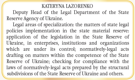 заступник начальника юридичного управління–начальник відділу експертного та нормативно-правового забезпечення Державного агентства резерву України