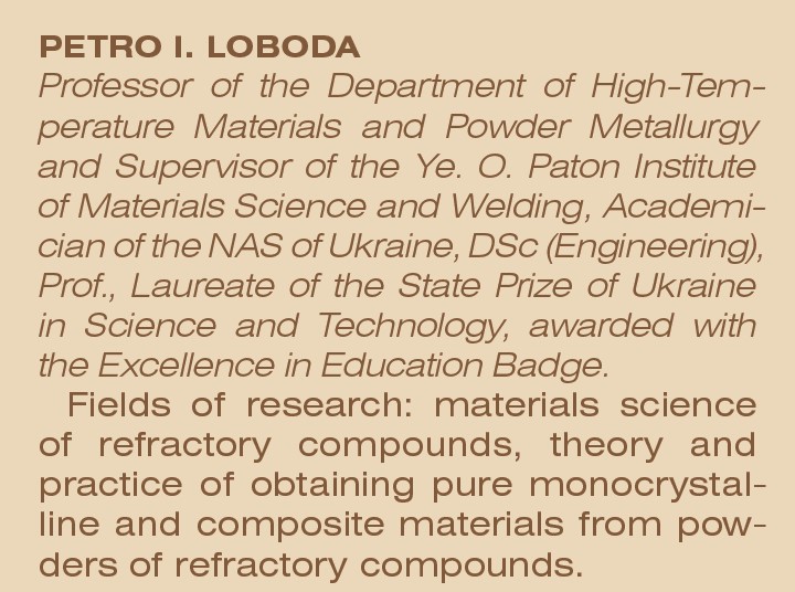 Академік НАН України П. І. Лобода отримав міжнародне визнання у галузі матеріалознавства тугоплавких сполук. Читав лекції з інженерії керамічних матеріалів в університетах Китаю, Німеччини та Франції, організовував для вітчизняних студентів лекції провідних вчених світу. Численні досягнення науковця збагатили матеріалознавство. Зокрема було розроблено обладнання для вирощування кристалів тугоплавких сполук, що дало можливість виростити композити з рекордними фізико-механічними характеристиками та впровадити вироби спецтехніки більш ніж на 35 підприємствах колишнього СРСР та України; створено новий напрям — селективне гаряче пресування, що в сотні разів скоротило час ущільнення порівняно з традиційним спіканням; створено новий клас композиційних тугоплавких матеріалів, здатних працювати в умовах великих термомеханічних навантажень.
