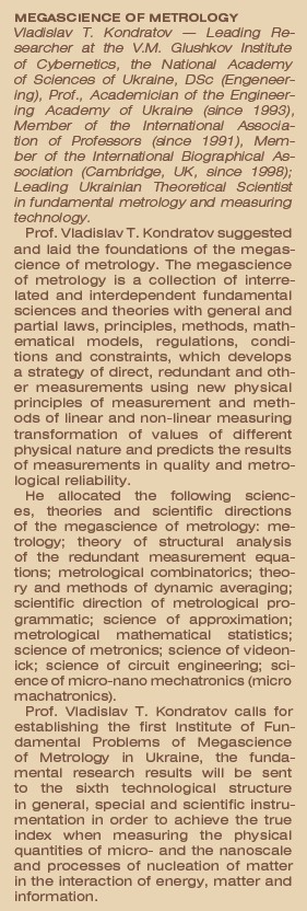 20) сформулював мегастратегію розвитку фундаментальних наук — стратегію системного об’єднання та розвитку всієї сукупності наук і теорій у відповідні меганауки, спрямовані на вирішення фундаментальних проблем важливих галузей матеріального виробництва з метою забезпечення стійкого розвитку науково-технічного потенціалу в окремо взятій галузі матеріального виробництва, наприклад у приладобудуванні. Є всі підстави для створення та розвитку фундаментальної меганауки метрології, щоб увійти в шостий технологічний уклад розвитку країни;