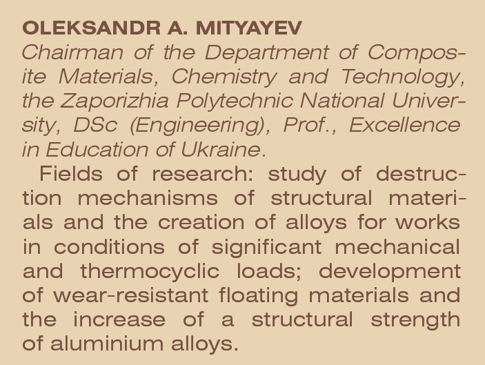 Увесь професійний шлях професора Олександра Анатолійовича Мітяєва пов’язаний із Національним університетом «Запорізька політехніка», де він очолює кафедру й багато років провадить активну науково-викладацьку діяльність. Учений досліджує технології конструкційних матеріалів і має низку свідоцтв на винаходи та патенти.