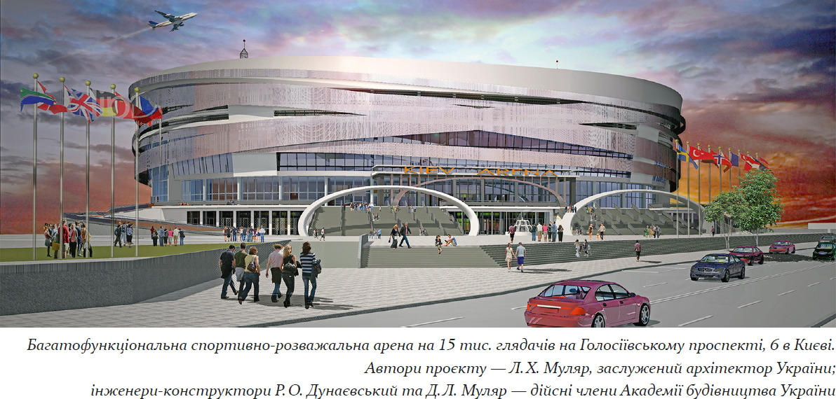 Вперше в Україні розроблено проєкт багатофункціональної спортивно-розважальної арени на 15 тис. глядачів (ігрові види спорту, змагання на льоду, масові концерти та шоу) у відповідності із європейськими нормативами і вимогами (в співавторстві з інженерами-конструкторами Р. О. Дунаєвським і Д. Л. Муляром — Інженерне бюро професора Катценбаха — Україна і партнери). Будівництво арени розпочато в 2013 р. на Голосіївському проспекті, 6 в Києві, але в зв’язку з військовими діями на Донбасі призупинено.
