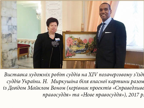 Наталія Миркушіна бере активну участь у діяльності професійних об’єднань. Суддя є членом Асоціації правників України та учасницею багатьох заходів, організованих Радою суддів України та іншими суддівськими організаціями. Так, на виставці художніх робіт суддів-митців, що відбулася у 2017 р. під час проведення XIV позачергового з’їзду суддів України, вона представила картину, яку високо оцінив керівник проектів «Справедливе правосуддя» та «Нове правосуддя» Девід Майкл Вон.