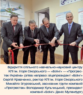 Попри те, що велику частину інженерів «Прогрестех-Україна» становлять випускники КПІ, компанія зацікавлена у більш тісній співпраці з лідерами підготовки технічних фахівців. Тому у 2014 р. було відкрито Спільний навчально-науковий центр КПІ — «Боїнг» — «Прогрестех-Україна». Він працює на базі Механіко-машинобудівного інституту, який очолює член-кореспондент НАН України, доктор технічних наук, професор Микола Іванович Бобир. Мета створення центру — додаткове забезпечення навчального процесу в університеті за моделлю дуальної освіти для підготовки сучасних авіаційних інженерів. Для студентів та викладачів така форма співпраці дає змогу опановувати