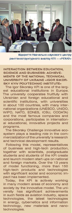 КПІ ім. Ігоря Сікорського по праву може пишатися своєю всесвітньо відомою школою в галузі матеріалознавства і нанотехнологій. Її фундаторами стали випускники університету, академіки НАН України В. І. Трефілов, В. В. Скороход, Ю. М. Солонін, С. О. Фірстов. Сьогодні продовжують справу своїх видатних колег члени-кореспонденти НАН України П. І. Лобода і С. І. Сидоренко, професор С. К. Фомічов та багато інших викладачів і вчених університету. Серед багатьох міжнародних партнерів наукової школи матеріалознавців КПІ можна виділити японську корпорацію «РІГАКУ» — світового лідера в галузі рентгенівської аналітичної та промислової технологій. За обсягами виробництва і якістю своєї продукції вона посідає перше місце у світі. Корпорація випускає рентгенівське обладнання, призначене для аналізу металів, сплавів і мінералів, контролю якості продукції, аналізу кристалів і біологічних матеріалів. Корпорація є лідером продажу рентгенівського аналітичного обладнання на ринках США, Японії, країн Південно-Східної Азії і Південної Америки (Бразилія), яке використовують всі найбільші промислові компанії світу. У 2012 р. було відкрито спільний Навчально-науковий центр рентгеноструктурного аналізу КПІ ім. Ігоря Сікорського — «РІГАКУ», обладнання для якого надала саме японська корпорація. Воно використовується як для наукових досліджень, так і для проведення лабораторних робіт зі студентами дев’яти факультетів і інститутів КПІ — інженерно-фізичного, фізико-технічного, зварювального, механіко-машинобудівного, хіміко-технологічного, електроніки, біотехнології та біотехніки, медико-інженерного та видавничо-поліграфічного. Тож завдяки відкриттю Центру студенти-політехніки мають змогу набувати навички використання методу рентгеноскопічної дифракції для дослідження матеріалів і проводити різноманітні дослідження в галузі матеріалознавства. Результати ж досліджень зі свого боку стають основою для подальшого поглиблення співпраці КПІ з корпорацією «РІГАКУ» та іншими університетами й промисловими підприємствами України та світу, які беруть участь у створенні, упровадженні у виробництво й використанні матеріалів з новими властивостями. В цьому короткому огляді висвітлено діяльність лише декількох науково-педагогічних шкіл університету, які своїми інноваційними розробками і стартапами стали конкурентоспроможними не лише в Україні, а й у світі. В цілому ж КПІ ім. Ігоря Сікорського налічує 82 визнані у світі наукові школи, які працюють за широким спектром інженерних напрямів, завдяки чому університет реалізує комплексні інноваційні програми й проєкти.