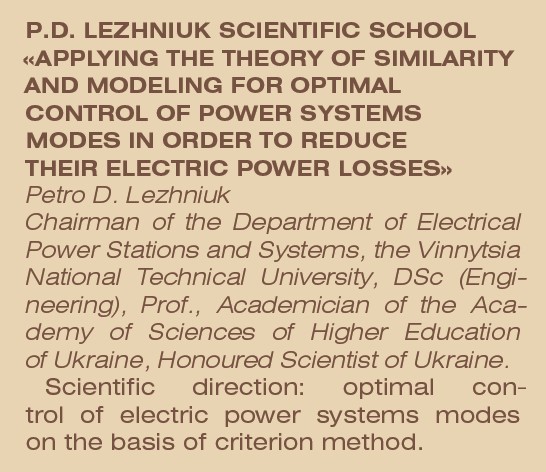 Петро Дем’янович Лежнюк започаткував у Вінницькому національному технічному університеті науковий напрям із застосування теорії подібності та моделювання для оптимального керування режимами електроенергетичних систем (ЕЕС) з метою зменшення в них втрат електроенергії. Розвинуто теорію подібності та математичного моделювання стосовно задач оптимального керування нормальними режимами ЕЕС. Над новітніми дослідженнями цього напряму, які забезпечують енергоефективність, нині активно працюють учні Петра Дем’яновича.