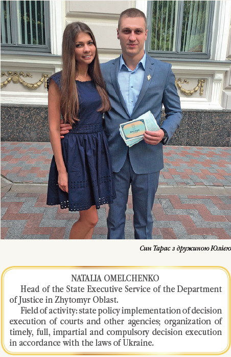 За багаторічну сумлінну працю Наталію Анатоліївну Омельченко нагороджено почесними грамотами міністра МВС України та міністра юстиції України, голови Житомирської обласної державної адміністрації та голови Департаменту державної виконавчої служби України, а також нагрудним знаком «За сумлінну службу в органах державної виконавчої служби».
