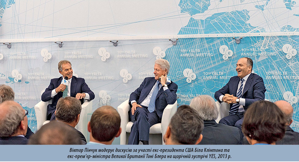 Фонд Віктора Пінчука підтримує Глобальну ініціативу Клінтона, освітні програми Фонду Тоні Блера та Центру Миру Переса.