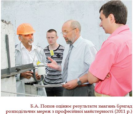 «Полтаваобленерго». У 1996 році Б.А. Попову було присвоєно звання «Заслужений енергетик України», а в грудні 1998 року його обрали головою правління—генеральним директором ВАТ «Полтаваобленерго». Розуміючи, що керівникові такого рівня необхідна не тільки спеціальна, а й економічна освіта, він у 1998 році закінчує Харківську державну академію міського господарства за спеціальністю «Економіка підприємства» та отримує кваліфікацію інженера-економіста. В цей час його обирають депутатом Полтавської обласної ради (1998–2002).
