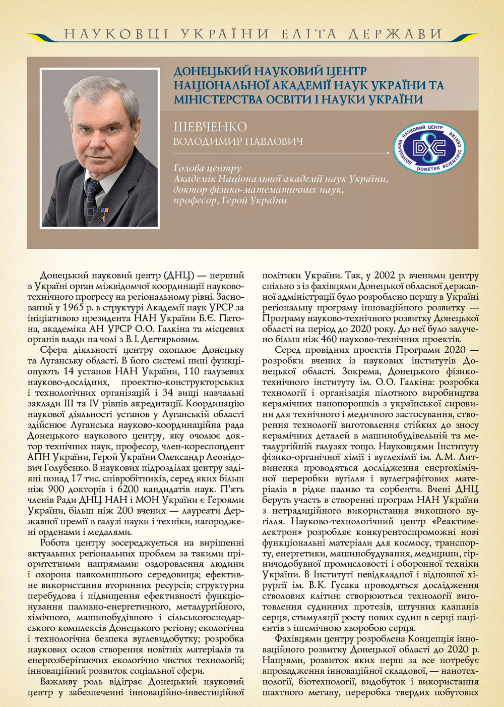 НАУКОВІ ЦЕНТРИ НАЦІОНАЛЬНОЇ АКАДЕМІЇ НАУК УКРАЇНИ ТА МІНІСТЕРСТВА ОСВІТИ І НАУКИ УКРАЇНИ Донецький науковий центр Національної академії наук України та Міністерства освіти і науки України