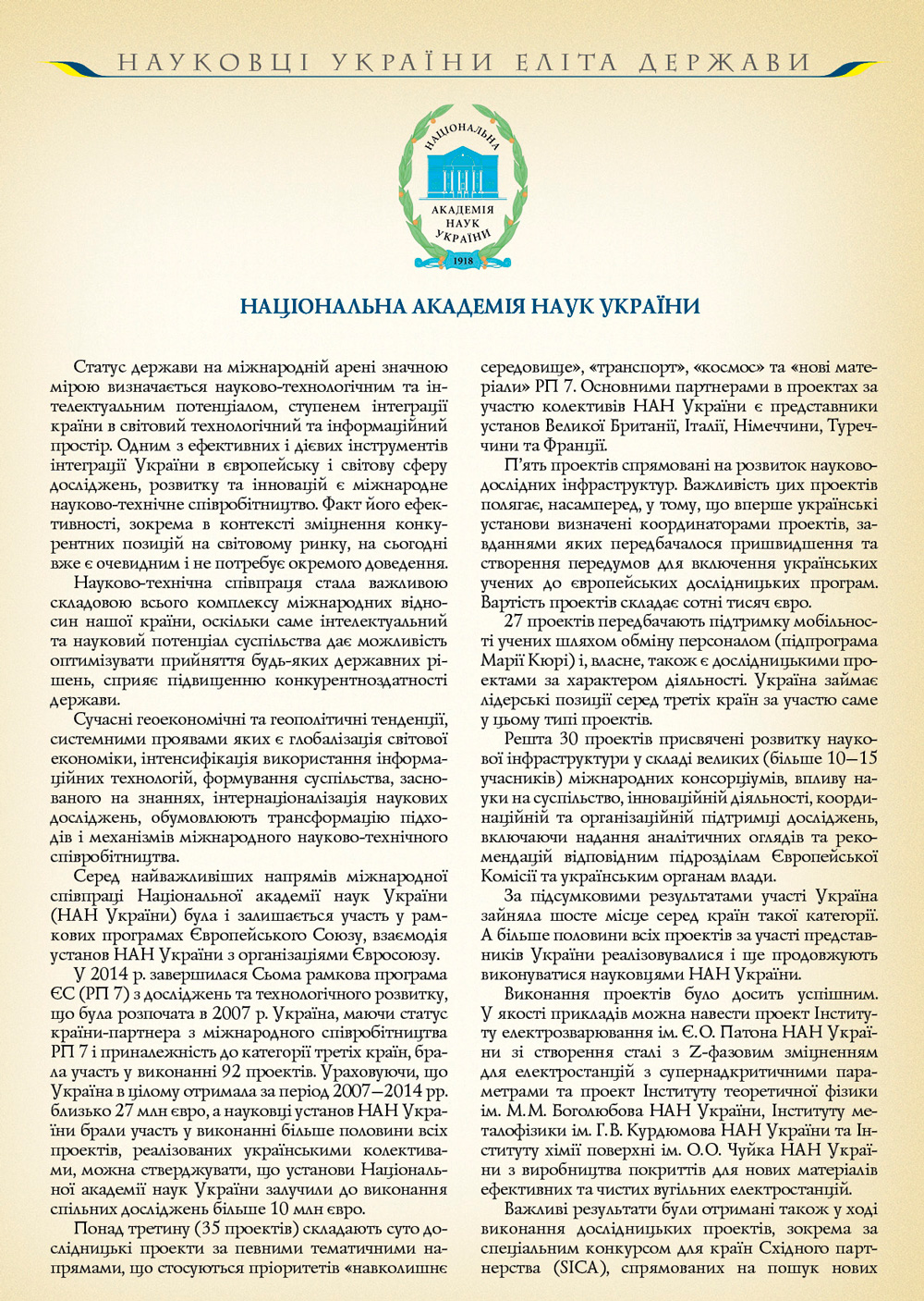 МІЖНАРОДНА НАУКОВА СПІВПРАЦЯ Національна академія наук України