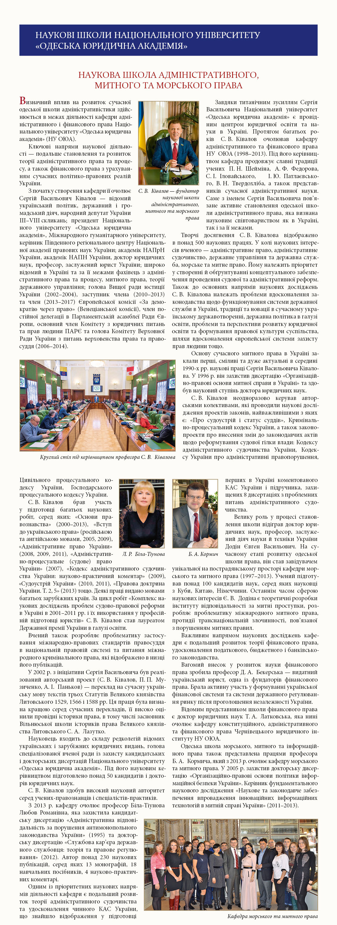 Наукові школи Національного університету «Одеська юридична академія» Наукова школа адміністративного, митного та морського права