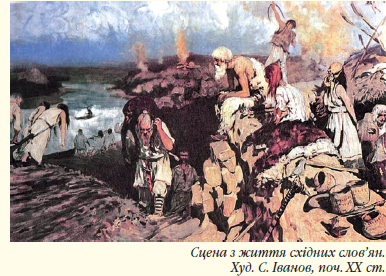У силу конкретних історичних умов (географічне положення, специфічних звичаїв і традицій, особливості ведення господарства і побуту тощо) розпад первіснообщинного суспільства у східних слов’ян затримався у часі і співпав із падінням рабовласницького ладу в Європі. Тому в процесі становлення основ права у східних слов’ян рабський уклад в житті не набув розвинутої форми, оскільки рабство носило специфічний домашній, патріархальний характер. Правові відносини складалися між вільними людьми — родоплемінною знаттю, що зосереджувала землю й інші цінності в своїх руках, вільними общинниками, кабальними людьми.