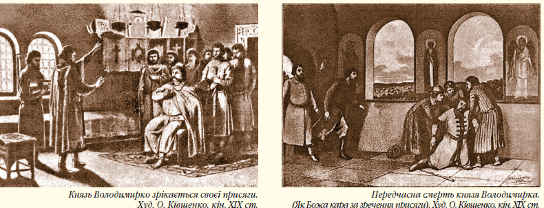 Разом з православною вірою в Україні-Русі діяли і поширювались різні збірники постанов Вселенських соборів патріархів, серед яких найбільшого значення мали: «Кормчі книги» VI–VII ст. — збірники церковних і світських правових норм, необхідних для розгляду справ в церковних судах; «Еклогах» 741 р. — збірники окремих норм візантійського цивільного права (спадкового, опіки, заповіту), шлюбного, родинного, кримінального, процесуального права; «Прохірон» 870 р. — відомий ще під назвою «Закони градські». По суті, це був початок рецепції римського права.