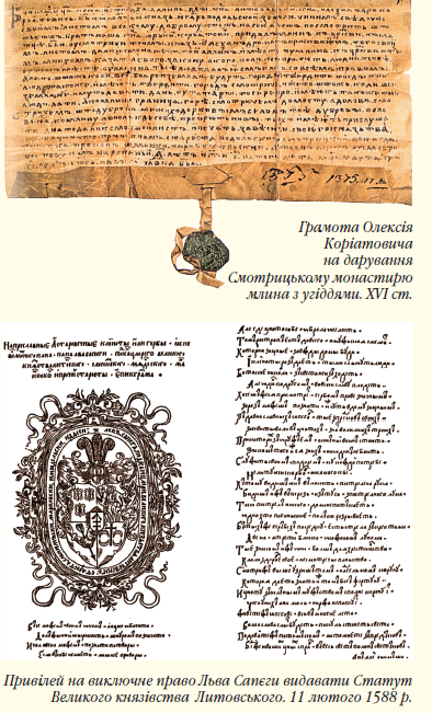 ським — «Права, за якими судиться малоросійський народ» /1879 р./, В. Антоновичем — «Архив юго-западной России» /60–70 pp. XIX ст./, М. Володимирським-Будановим — «Хрестоматия по истории русского права» /1896 р./, М. Василенком — «Материалы для истории экономического юридического и общественного быта Старой Малороссии», вип. II, — «Экстракт из указов, инструкций и учреждений...» 1786 р. /1902/.