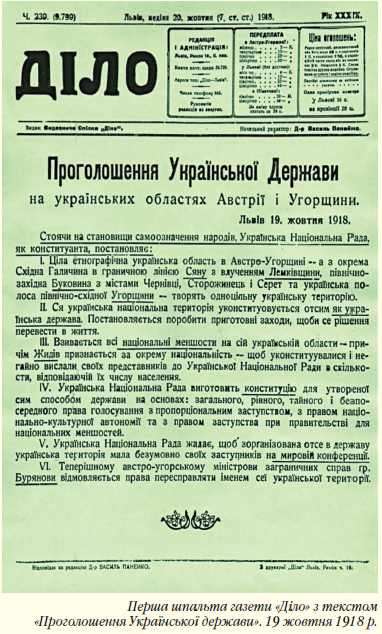 Політична ситуація у Європі склалася так, що наприкінці жовтня 1918 р. перестала існувати Австро-Угорська імперія. Представницька Громадянська національна рада українських земель 13 листопада проголосила утворення земель Галичини і Буковини у складі Західноукраїнської Народної Республіки. Законом від 4 січня 1919 р. було передбачено закріплення її народно-демократичного державного апарату.