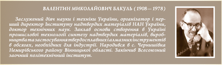 В.М. Бакуль працював на різних посадах в об’єднанні «Вугілля», на Верстатоінструментальному заводі, на заводах «Гідропривід» та «Союзтвердосплав». У 1957 р. «Союзтвердосплав» переводять з Харкова до Києва, і на його базі за ініціативи В.М. Бакуля у 1959 р. створюють Центральне конструкторсько-технологічне бюро твердосплавного й алмазного інструменту з експериментальним заводом та науково-дослідними лабораторіями, перетворене у 1961 р. на Український науково-дослідний і конструкторсько-технологічний інститут синтетичних надтвердих матеріалів та інструменту (з 1972 р. — Інститут надтвердих матеріалів АН УРСР).