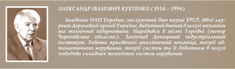 Представники наукової школи О.І. Кухтенка одержали також вагомі результати із теорії коливань, теорії просторово-розподілених систем керування швидкоплинними фізичними процесами, теорії механізмів і машин, створили унікальні багатовимірні системи керування та автоматично керовані пристрої, зокрема тренажер «Сиріус», що моделює динаміку космічного польоту.