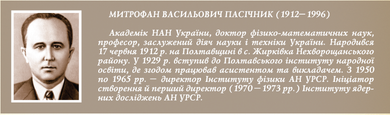 Наукова школа заснована М.В. Пасічником у 1949 р. на базі відділу ядерної фізики Інституту фізики АН України (Київ).