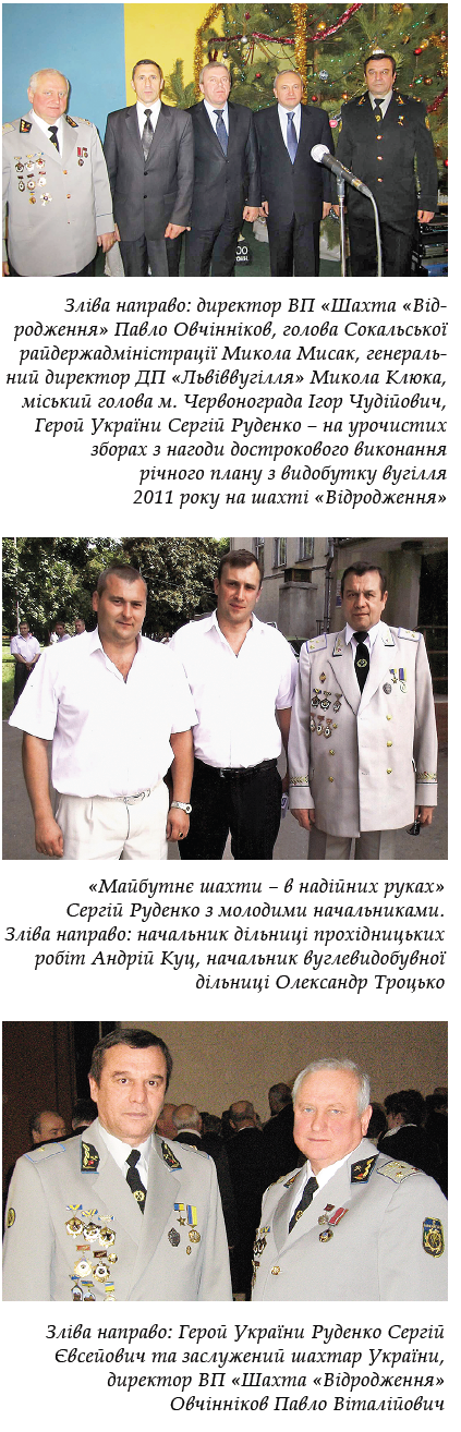 У 2007 році, на час присвоєння звання «Герой України», працював начальником дільниці з видобутку вугілля ВП «Шахта «Відродження» державного підприємства «Львіввугілля». На сьогодні Сергій Євсейович Руденко обіймає посаду заступника технічного директора ДП «Львіввугілля». Успішний керівник організував роботу так, щоб його команда працювала злагоджено і результативно. Так, за керівництва Сергія Євсейовича, річні показники видобутку вугілля на шахті «Відродження» перевищували планові.