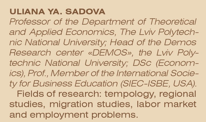 Професор У. Я. Садова — науковець, ініціатор й керівник науково-дослідних тем, конкурсних проєктів, організатор просвітницьких заходів, викладач. Автор наукових праць з регіоналістики, міграціології, соціальної економіки і політики, економіки праці та зайнятості. Ініціатор становлення окремого напряму наукових досліджень — темпології.
