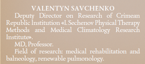 В.М. Савченко – український вчений у галузі медичної реабілітації і курортології, відновлювальної пульмонології. Лікар терапевт, пульмонолог, фізіотерапевт і санолог. Досвід наукової роботи Валентина Михайловича перевищує 25 років.