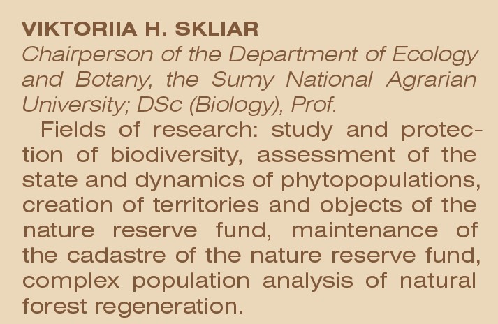 Вікторія Григорівна Скляр консультує установи природно-заповідного фонду Сумської області з питань збереження біорізноманіття та охорони довкілля. Вона є членкинею науково-технічних рад природного заповідника «Михайлівська цілина» й регіонального ландшафтного парку «Сеймський» та керівницею 14 науково-дослідних тем. Дві з них — «Інвентаризація природних комплексів територій та об’єктів природно-заповідного фонду у Полтавській, Кіровоградській та Луганській областях» й «Інвентаризація природних комплексів територій та об’єктів природно-заповідного фонду Хмельницької та Вінницької областей» — реалізовано на замовлення Департаменту заповідної справи. А на замовлення профільного департаменту Сумської облдержадміністрації виконано «Розробку проектів створення територій та об’єктів природно-заповідного фонду місцевого значення», «Розробку проекту організації території регіонального ландшафтного парку «Сеймський»» і «Наукові дослідження природних лісових біогеоценозів області щодо збереження видів рослин, занесених до Червоної книги України, з метою виявлення територій, перспективних для подальшого створення нових об’єктів природно-заповідного фонду». За результатами виконання зазначених науково-дослідних робіт природоохоронний статус отримали 40 територій загальною площею близько 2400 га.