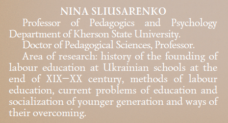 Професор Н.В. Слюсаренко – науковець у галузі педагогіки, займається дослідженням питань історії педагогіки та методики трудового навчання.