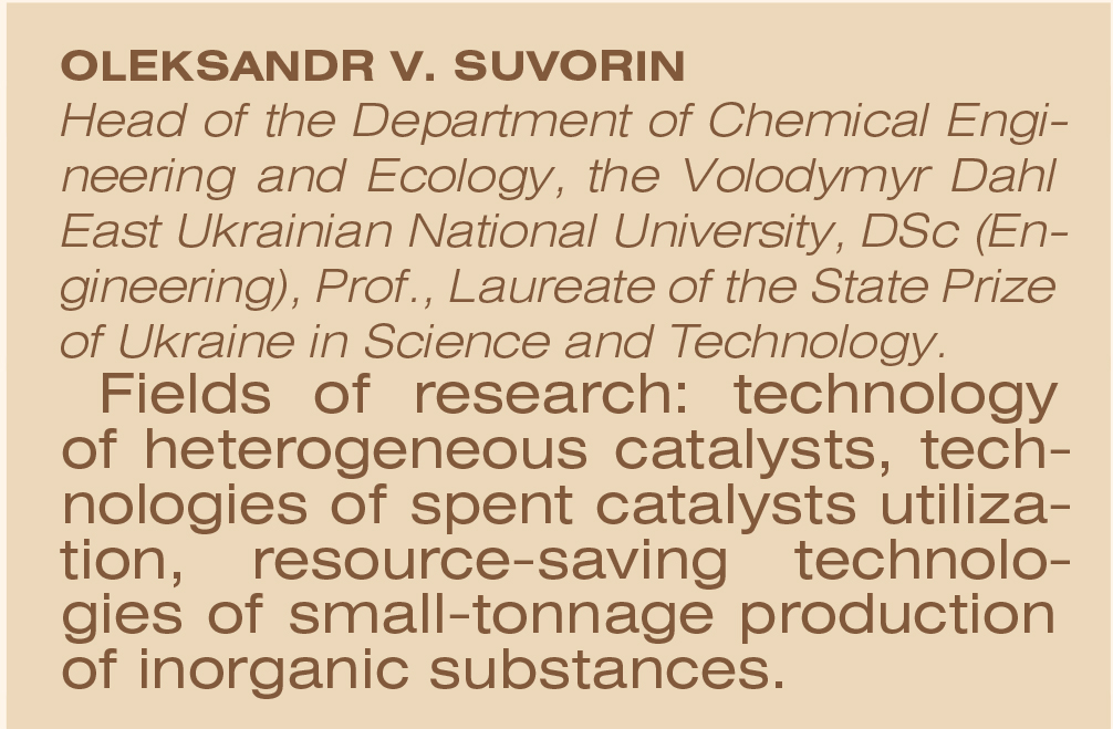 у розробленні нових мідь-, цинк-, нікель-, кобальт-, паладій-, залізо-, алюміній- і хромовмісних каталізаторів для різних процесів, модернізації наявних технологій цих каталізаторів.
