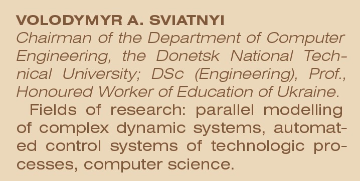 Володимир Андрійович Святний — вiдомий вчений у галузi паралельного моделювання складних динамічних систем, автоматизованих систем керування технологічними процесами та iнформатики. Народився 7 грудня 1937 р. на хуторі Мережки Осиківської сільради Амвросіївського району Донецької області. У 1961 р. закінчив електротехнічний факультет (ЕТФ) Донецького політехнічного інституту, а у 1966 р. захистив кандидатську дисертацію як пошукач кафедри ЕОМ і надалі весь професійний шлях пов’язав із альма-матер.