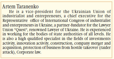 Віце-президент Українського союзу промисловців і підприємців, керівник Представництва Міжнародного конгресу промисловців та підприємців в Україні, партнер-засновник Адвокатського об’єднання «КВЕСТ», заслужений юрист України