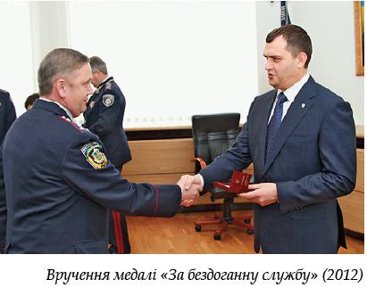 За вагомий особистий внесок у зміцнення законності та правопорядку, боротьбу зі злочинністю, зразкове виконання службового обов’язку та високий професіоналізм нагороджений медаллю «За бездоганну службу» ІІІ ступеня (2012).