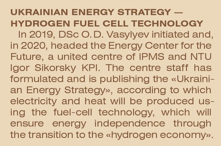 У 2019 р. доктор фізико-математичних наук О. Д. Васильєв ініціював і 2020 р. очолив при НТУУ «КПІ ім. Ігоря Сікорського» спільний між ІПМ і КПІ Центр енергетики майбутнього. Завданням Центру є просвітницька діяльність, підготовка фахівців, розвиток паливно-комірчаних і водневих технологій та виробництв для водневої енергетики та економіки. Разом з колегами сформульована і вже оприлюднюється «Українська енергетична стратегія», за якої електрику і тепло для країни пропонується виробляти з наявних у її Землі та на її поверхні відновлюваними рослинами і її Чорному морі газів, розчинених та сконденсованих у гідратах чи сірководні, за технологіями паливних комірок, що забезпечить і убезпечить енергетичну безпеку і стале економічне зростання України як високотехнологічної екологічно чистої потуги світу.